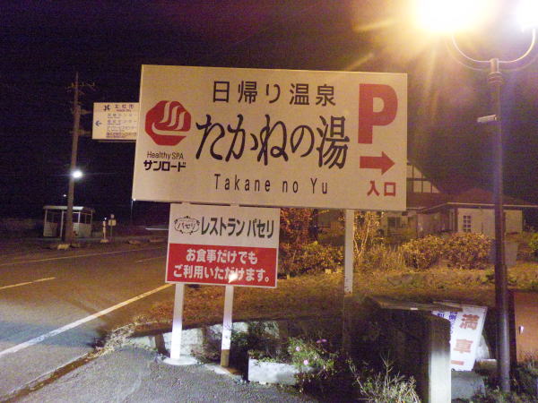 清里の手前にあるたかねの湯、日が暮れて間もない時間に温泉に入る