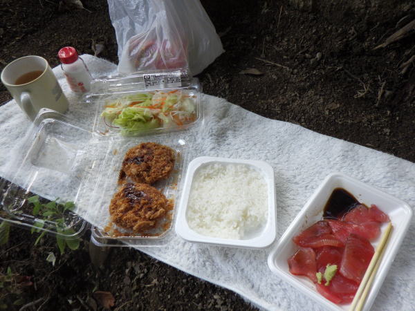 どうしても左前の木が邪魔になる 伐ってしまった 右側の地盤が軟らかくてNG、土を盛って固くなるのを待とう 林道にかかっているサクラの木、いずれは倒れるので伐っておく 遅い昼食 すっかり暗くなってしまった
